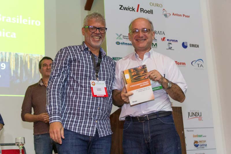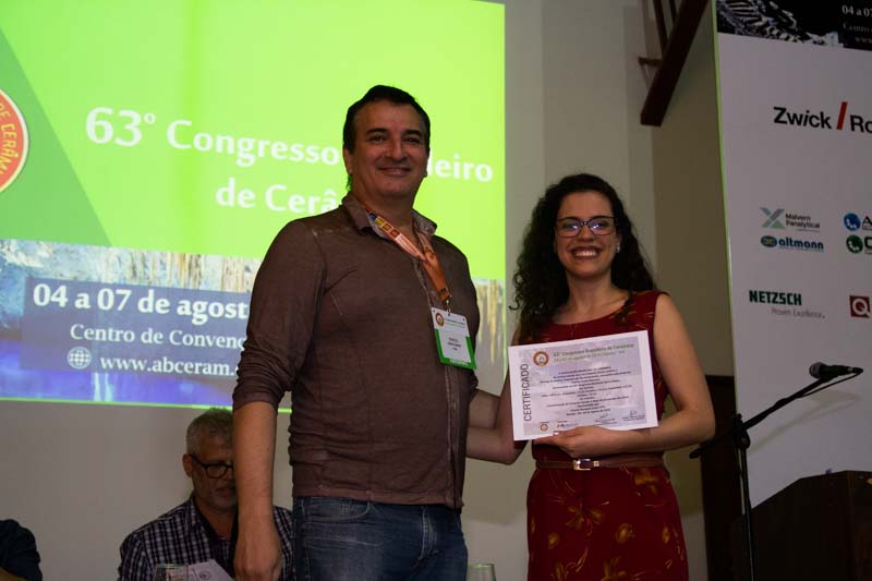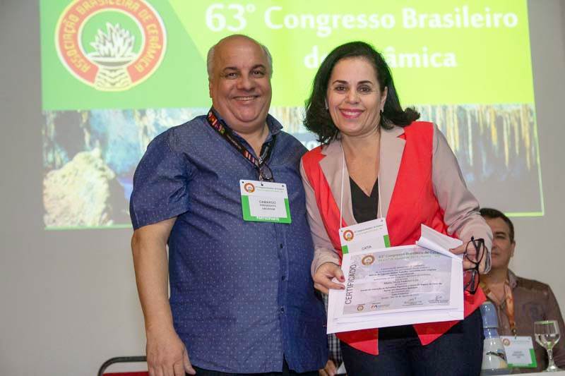 Participaram da mesa o Presidente da ABCERAM, Antonio Carlos de Camargo, Presidente do 63º Congresso Brasileiro de Cerâmica, Ulisses Soares do Prado e o Prof. Tércio Graciano Machado, do Instituto Federal da Bahia – IFBA. Na ocasião foram divulgados os trabalhos premiados (foto: 46) e também sorteados aos associados o livro O Processamento Cerâmico sem Mistério do Prof. Luiz Fernando Grespan Setz e uma Moringa oferecido pelo ateliê UDU Cerâmica Artesanal da Cidade de Bonito/MS.