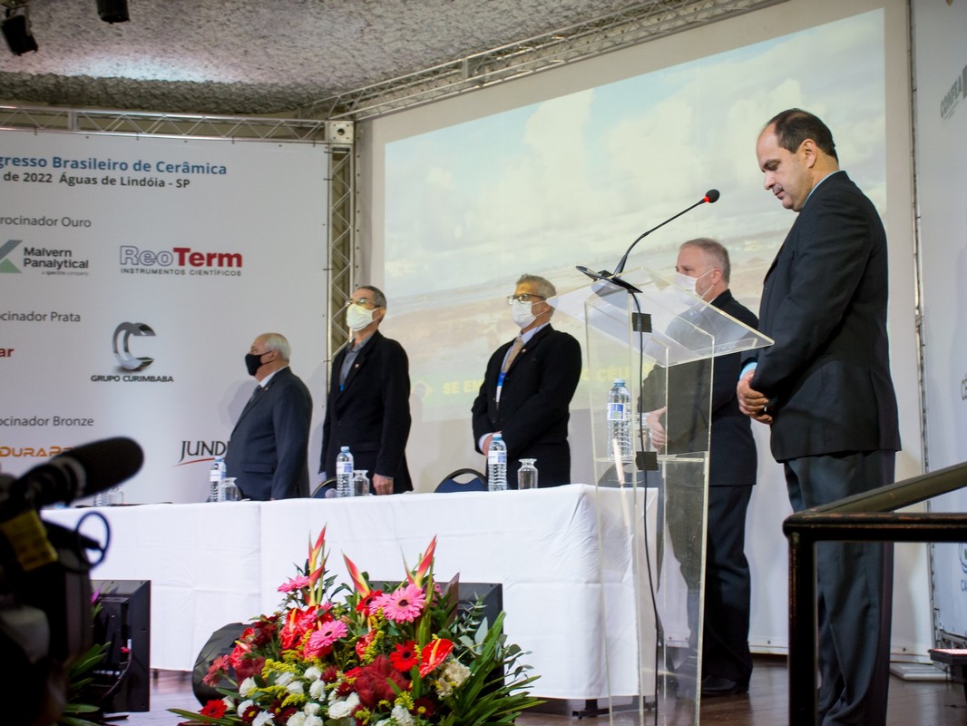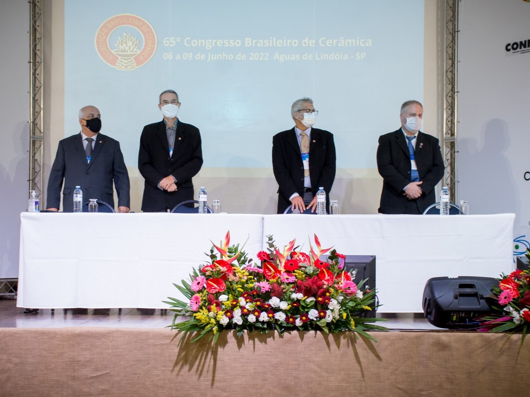 Participaram da mesa o Presidente do 65º/66º Congresso Brasileiro de Cerâmica Rafael Salomão; o Presidente da Associação Brasileira de Cerâmica-ABCERAM Ulisses Soares do Prado.